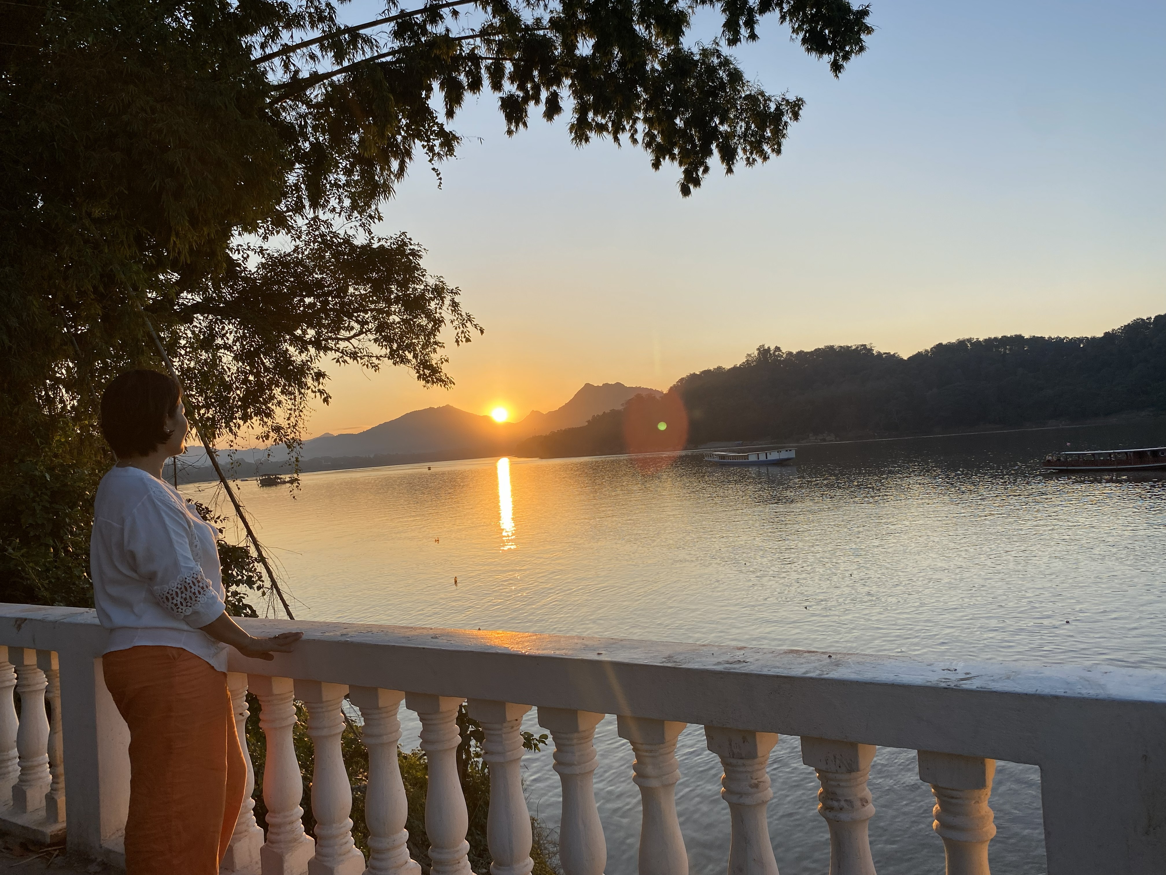 As the day comes to an end, watching the sunset over the Mekong River is one of the most peaceful experiences in Luang Prabang. The sky slowly turns warm shades of gold and pink, reflected on the calm water, while boats drift quietly past.