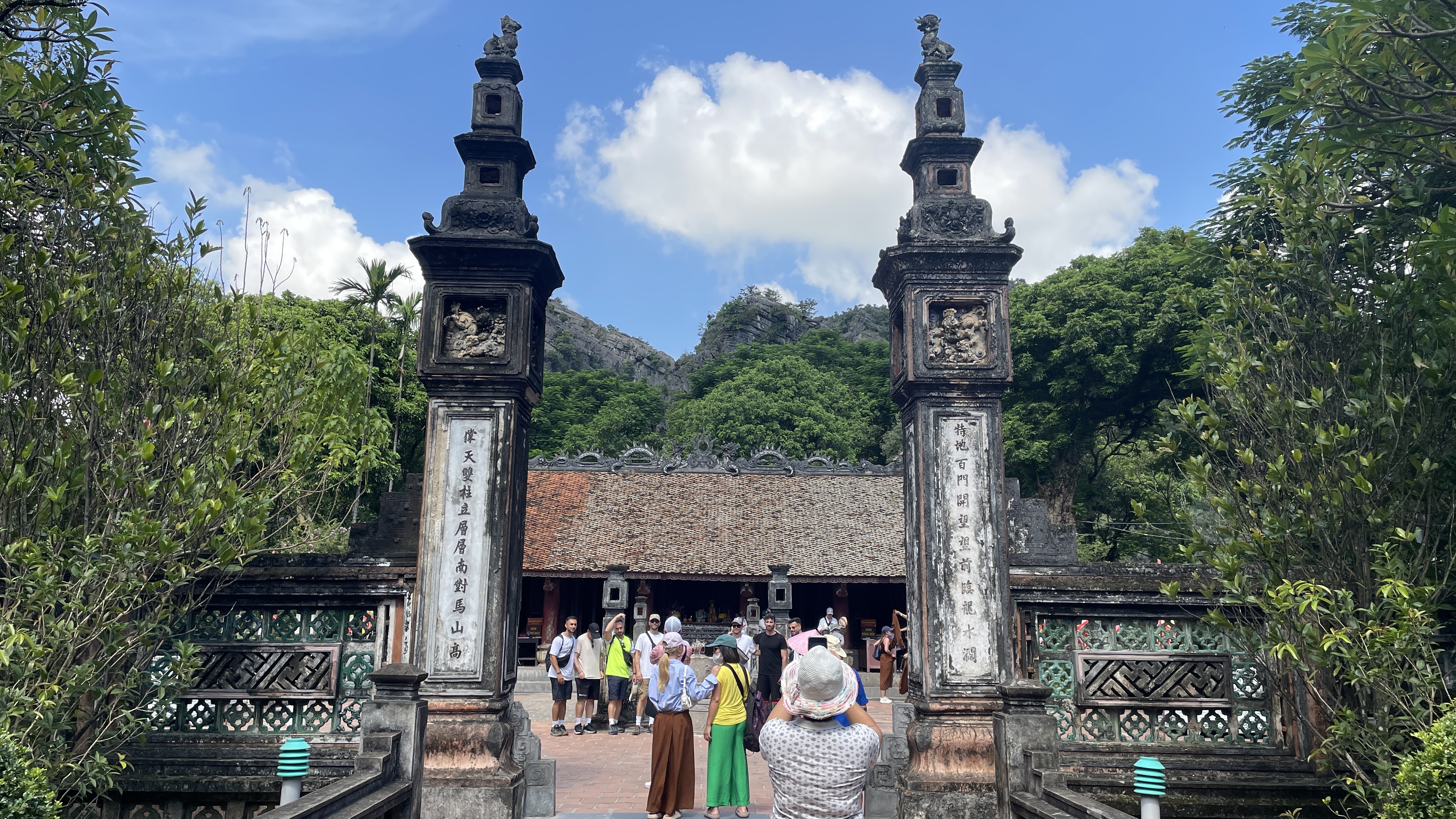 A short walk away stands the temple honoring King Le Dai Hanh, who succeeded King Dinh and continued building the nation’s stability. This sanctuary features distinctive woodwork and intricate stone pillars, with altars dedicated to the king and his queen. The temple’s quieter setting makes it ideal for reflection, and the view of limestone peaks rising beyond its walls adds to the sense of history embedded in the landscape.